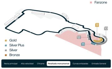 Depuis cet emplacement, vous pourrez voir les monoplaces atteindre 300 km/h et ralentir à 140 km/h dans un point de dépassement évident. Cette tribune offre une visibilité privilégiée de l’action sur la piste, dans l’une des zones les plus techniques et excitantes du circuit. Ce billet ne permet pas l’accès à la fan zone intérieure du virage relevé ‘La Monumental’.